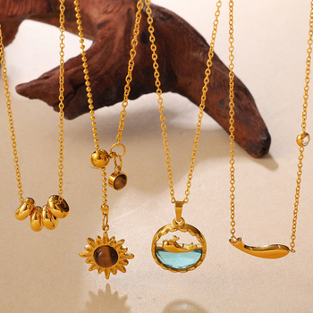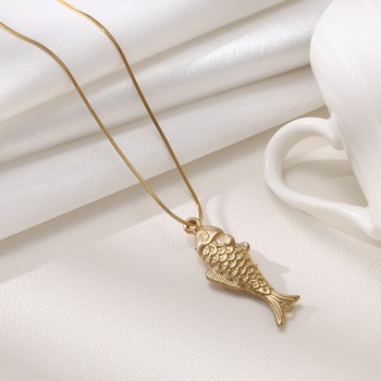 تخفيضات كبيرة على قلادة ذهبية من الفولاذ المقاوم للصدأ للنساء موضة عصرية راقية للسيدات سلسلة ترقوة طقم قرط وقلادة سمكة
