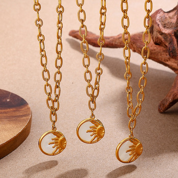 Collier pendentif en coquillage blanc lune vintage en acier inoxydable plaqué or 18 carats collier en coquillage personnalisé pour adultes pour femmes