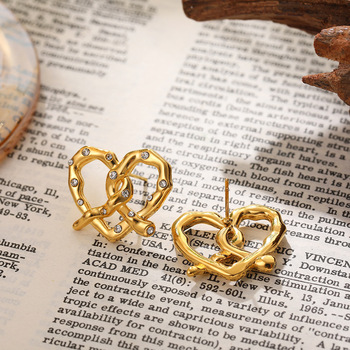유럽 미국 크로스 보더 골드 도금 스테인레스 스틸 지르콘 하트 스터드 귀걸이 트렌디 한 여성 기념일 쥬얼리