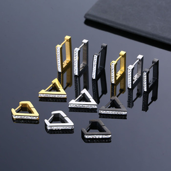 Xu Hướng Thời Trang Hình Học Tam Giác Zirconia-Studded Thép Không Gỉ Còng Tai Của Phụ Nữ Đa Năng Cổ Điển 18K Bông Tai Vàng